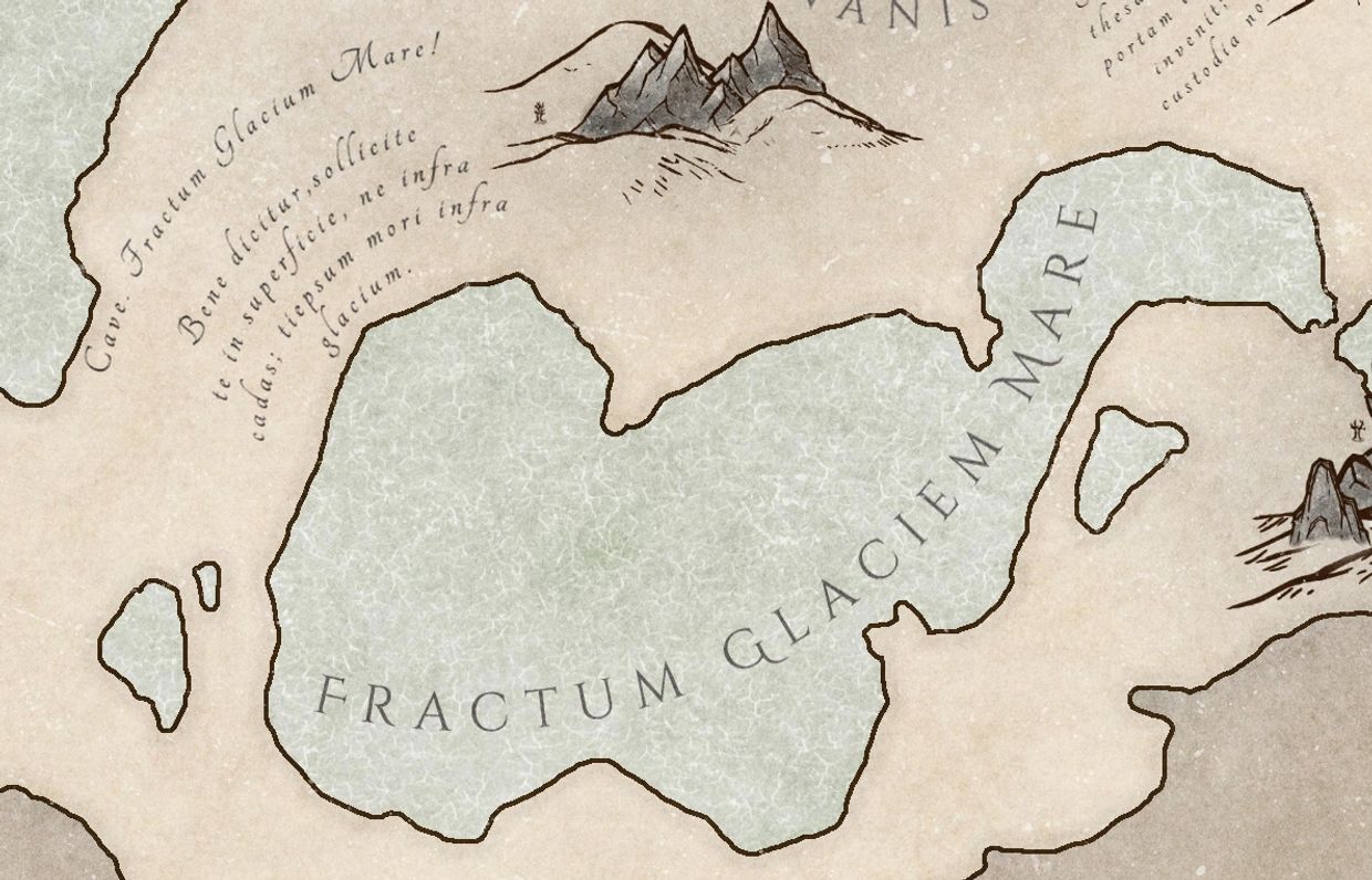"Being a regional illustration depicting the Ice Lands at scale; that one might navigate if misfortune put him here.
