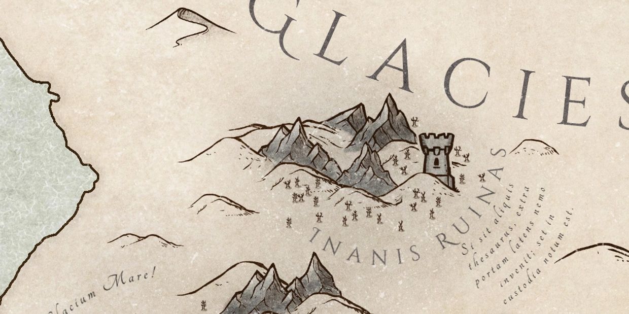 "Speaks rumor of a fortress, though it not be known if true. Not by sight, but by word is it charted, and so great distance may lay between icon and truth.